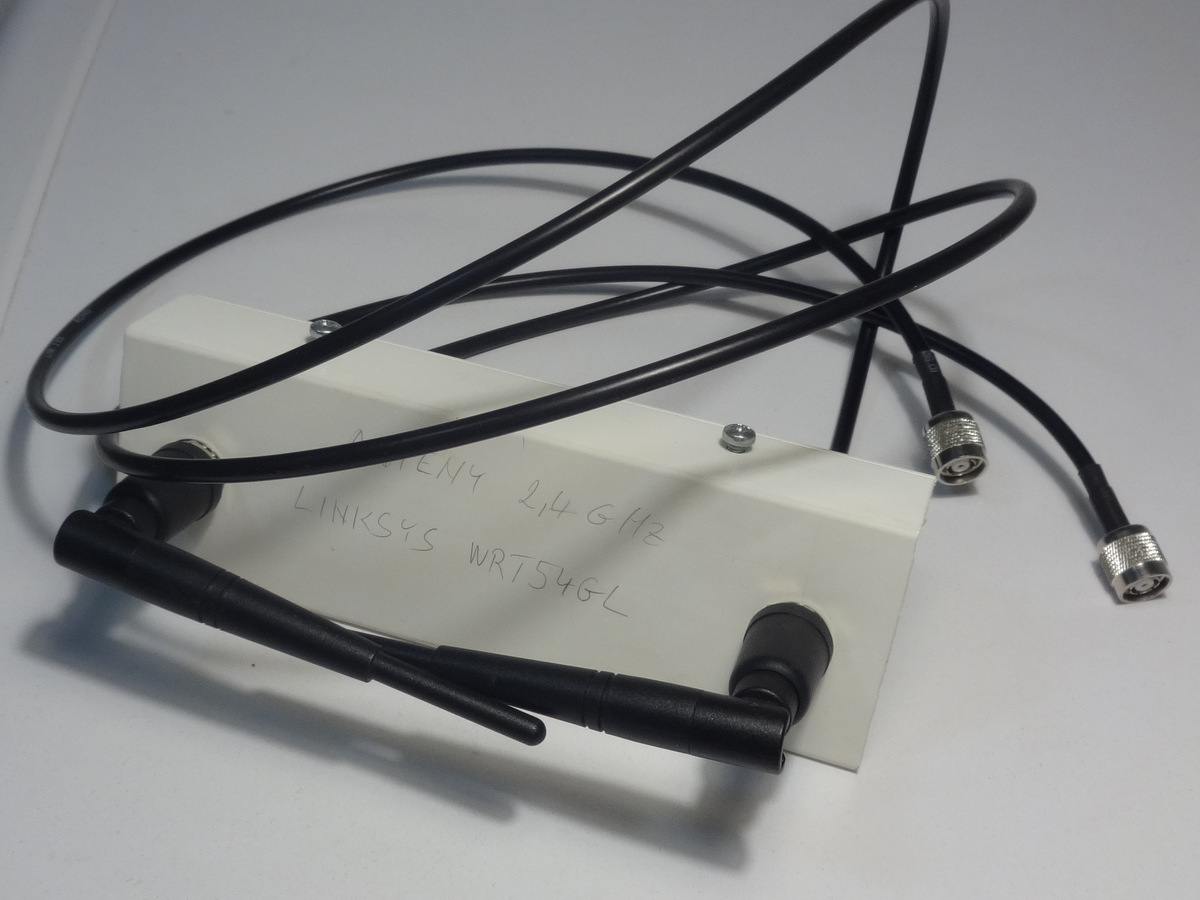 | 68 | souosý kabel, prodlužovací, okonektorovaný RP-TNC, pro prodloužení k anténám routeru Linksys WRT54GL, včetně antén pro 2,4 GHz | délka 1 metr, Z0 = 50 Ω, 1. konec s ♀ RP-TNC (female), 2. konec ♂ RP-TNC (male) | použitý | 2 kusy |