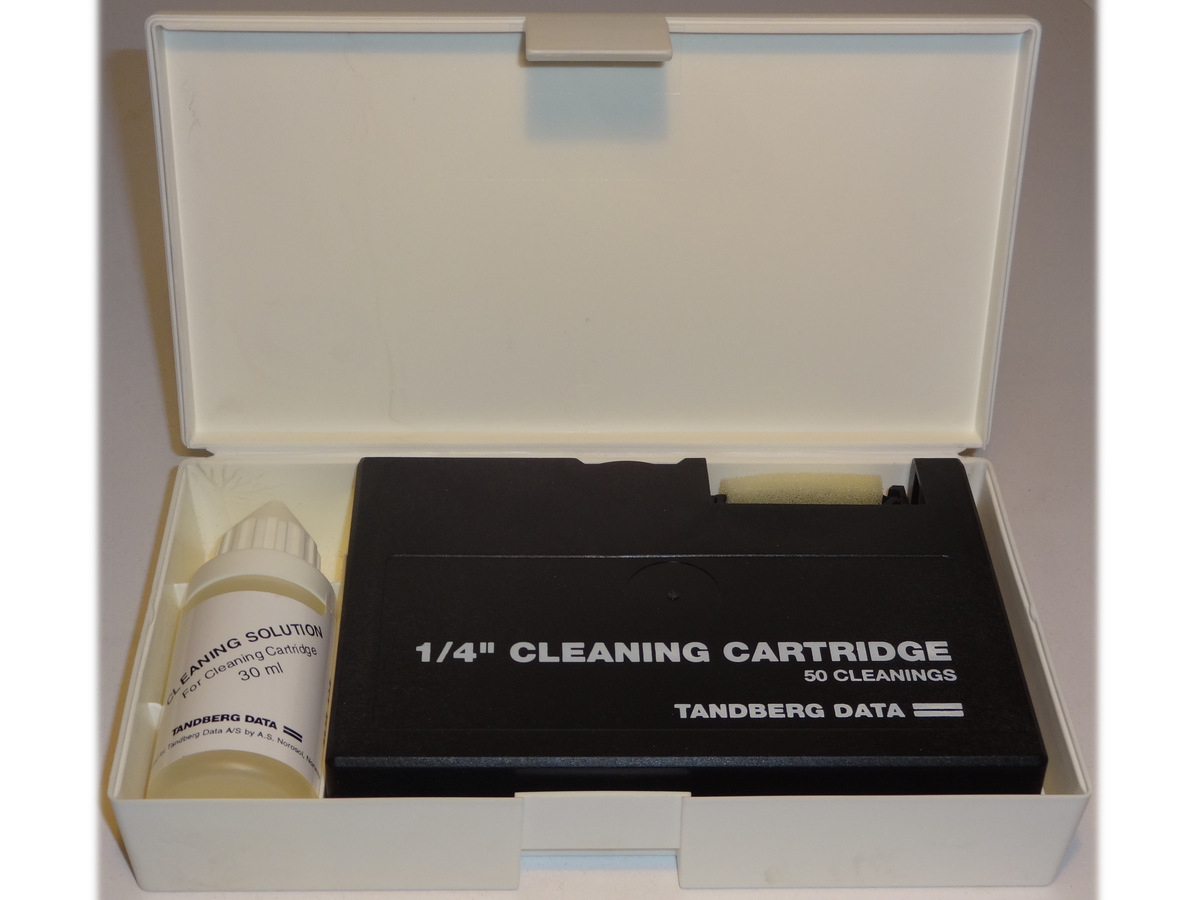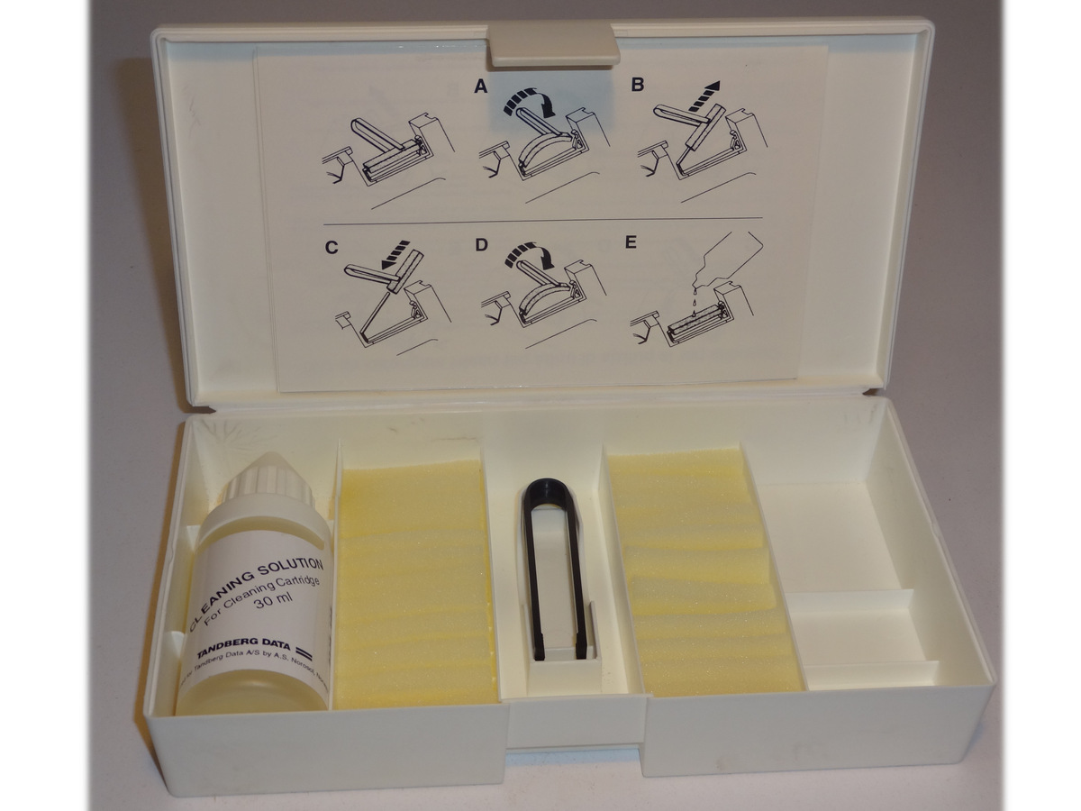 | ¼″ cleaning cartridge kit | Tandberg Data A/S | použitý, část molitan. polštářků se rozpadá stářím | 2 kusy |
